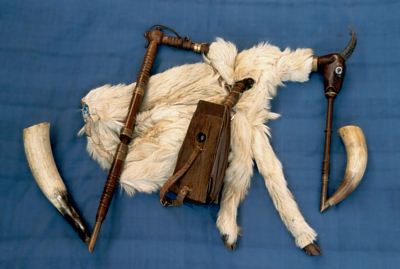 Der böhmische Bock oder Czeske Dudy ist ein eher leiser Vertreter der Dudelsack-Familie. Die Spielpfeife verfügt im Gegensatz zu den meisten anderen Sackpfeifen, die ein Doppelrohrblatt besitzen, über eine einzelne, aufschlagende Zunge. Dadurch ergibt sich der gedeckte und vergleichsweise ruhigere Klang des Instruments. |